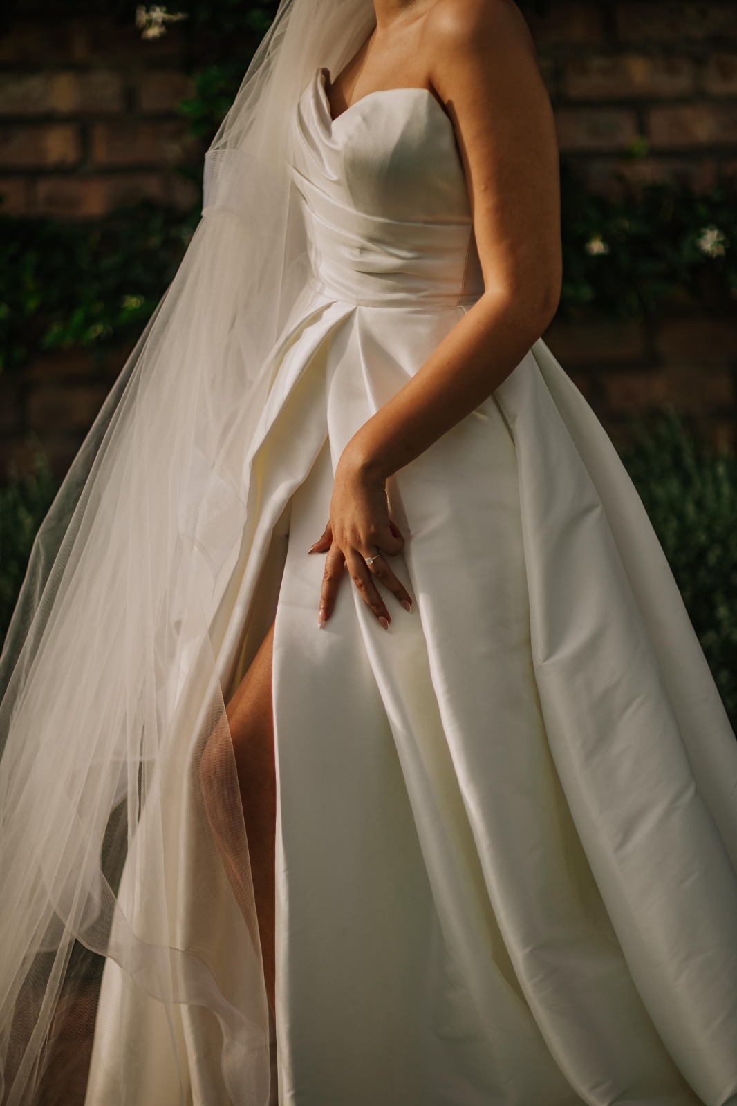 Buttons adorning the bodice of the Brianna gown lend a hint of vintage-inspired charm, creating a captivating focal point that adds a touch of whimsy to the gown’s sophisticated silhouette. With their delicate detailing, these buttons add an element of elegance and refinement, ensuring that every detail of the Brianna gown is nothing short of perfection.