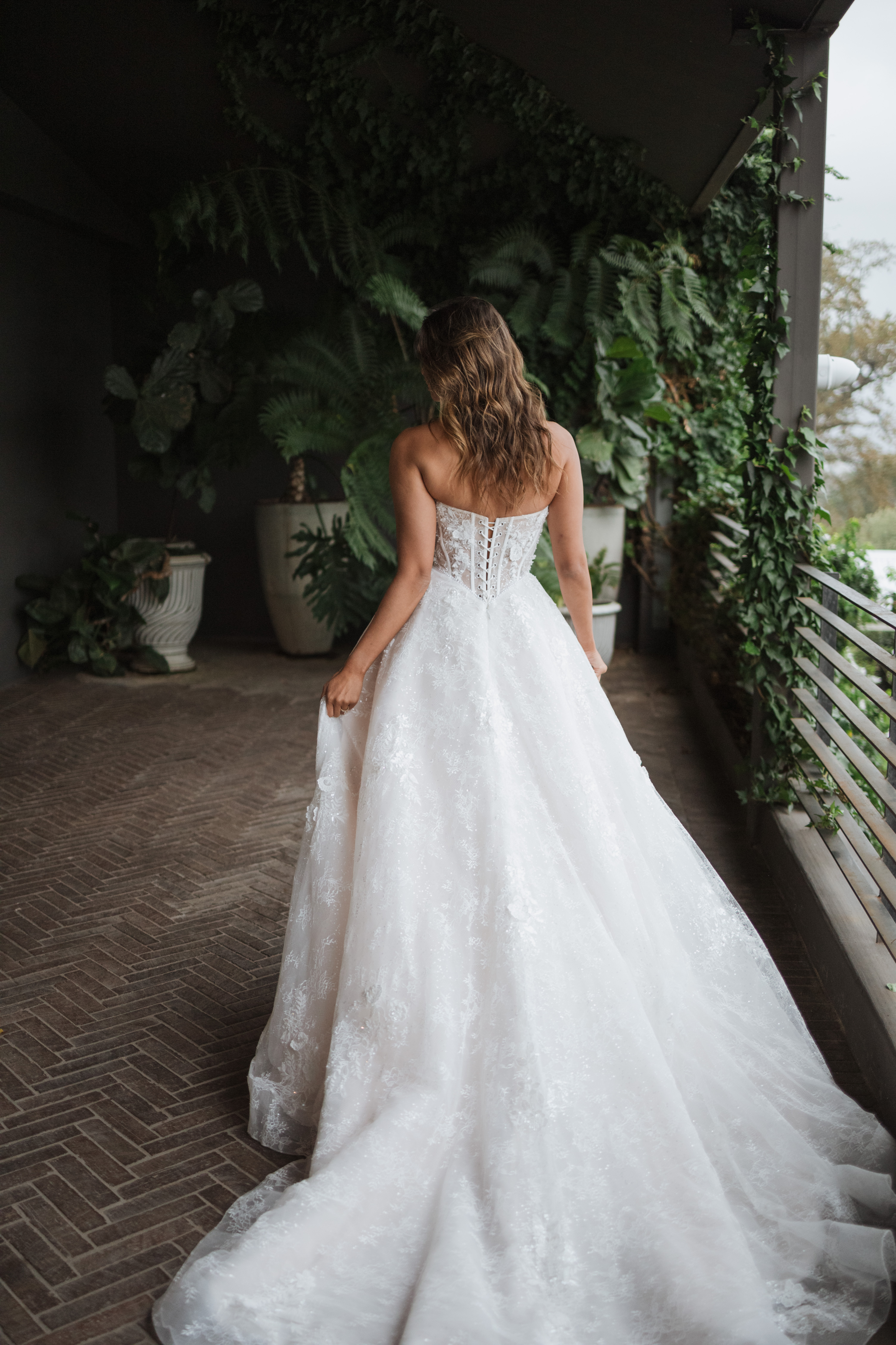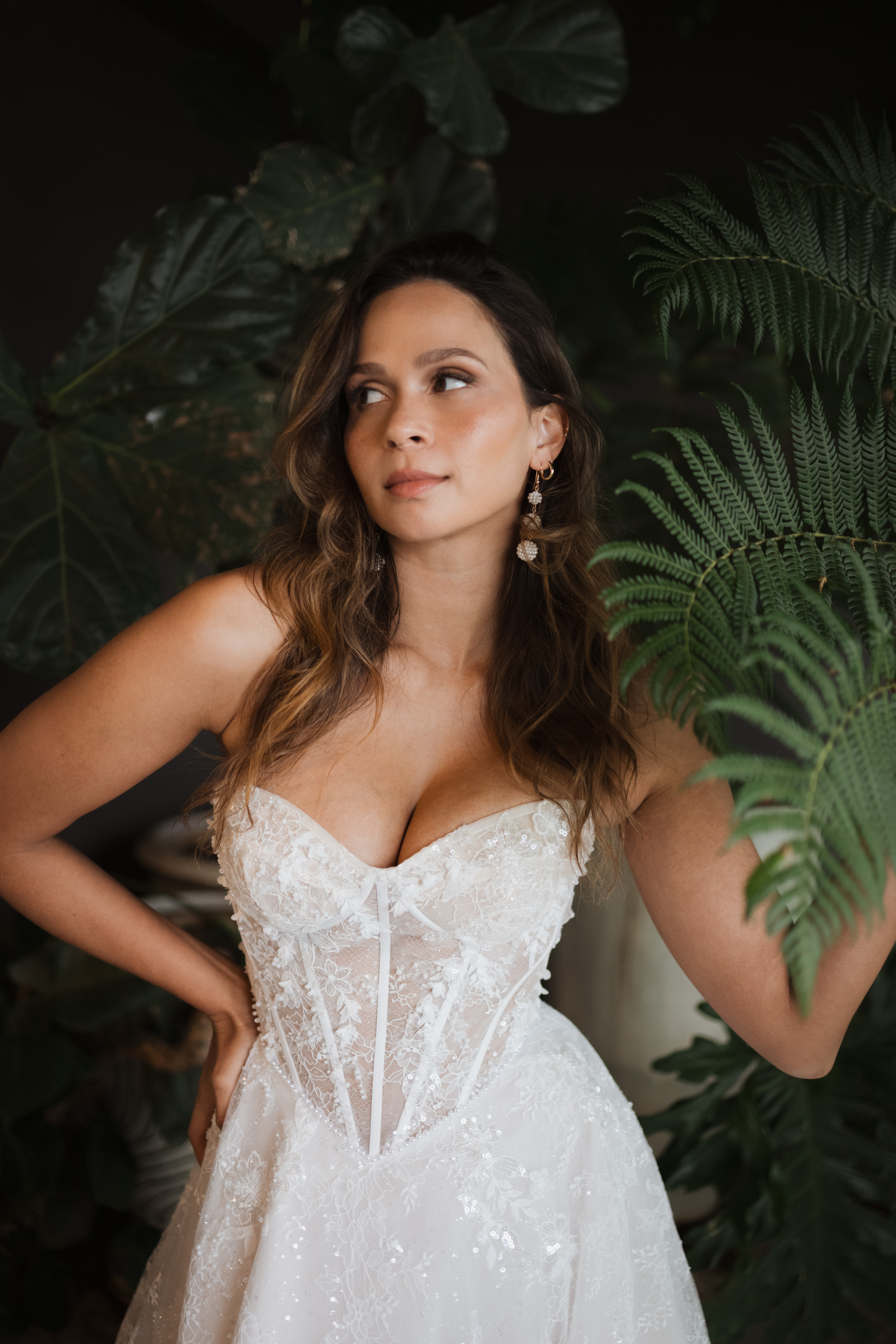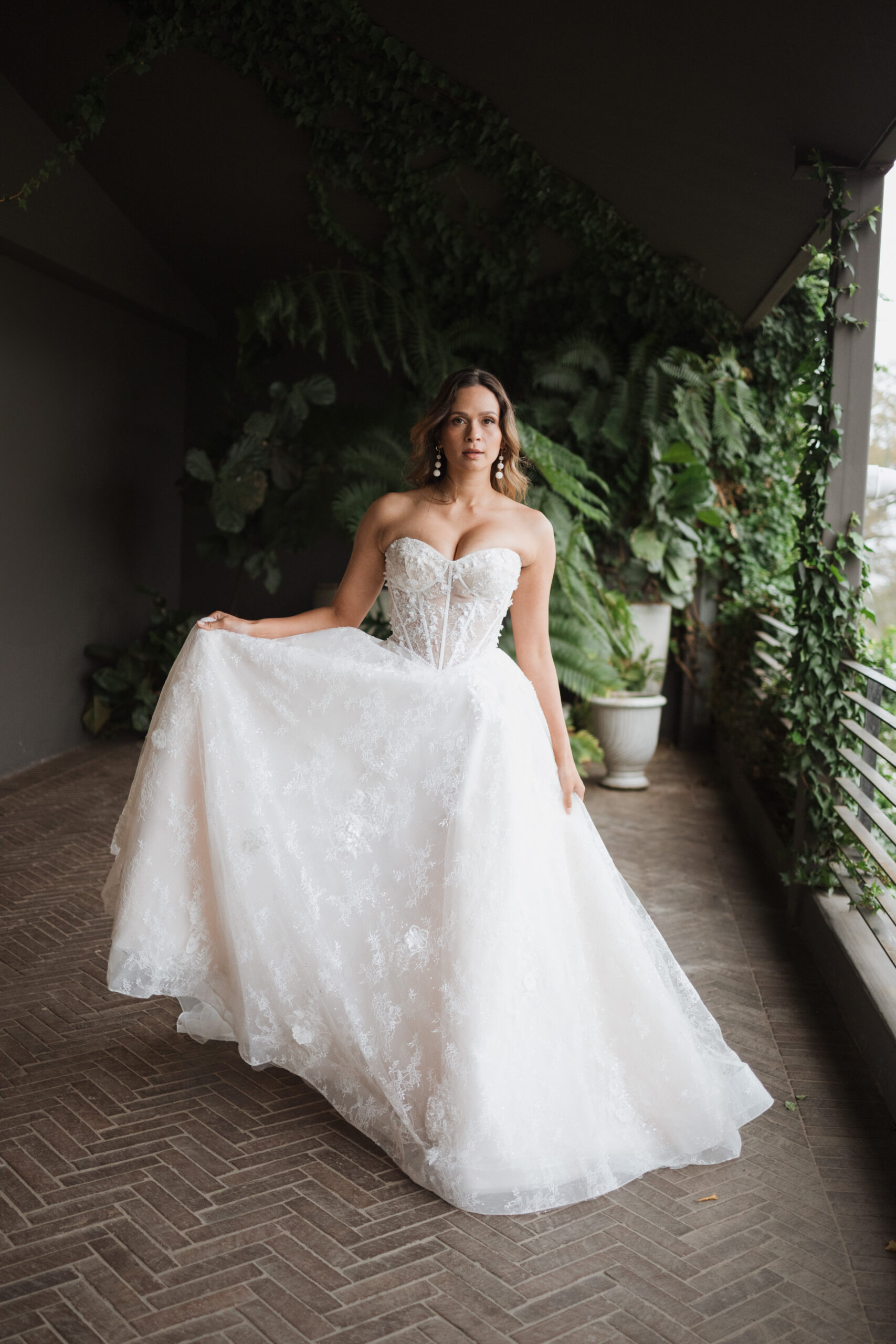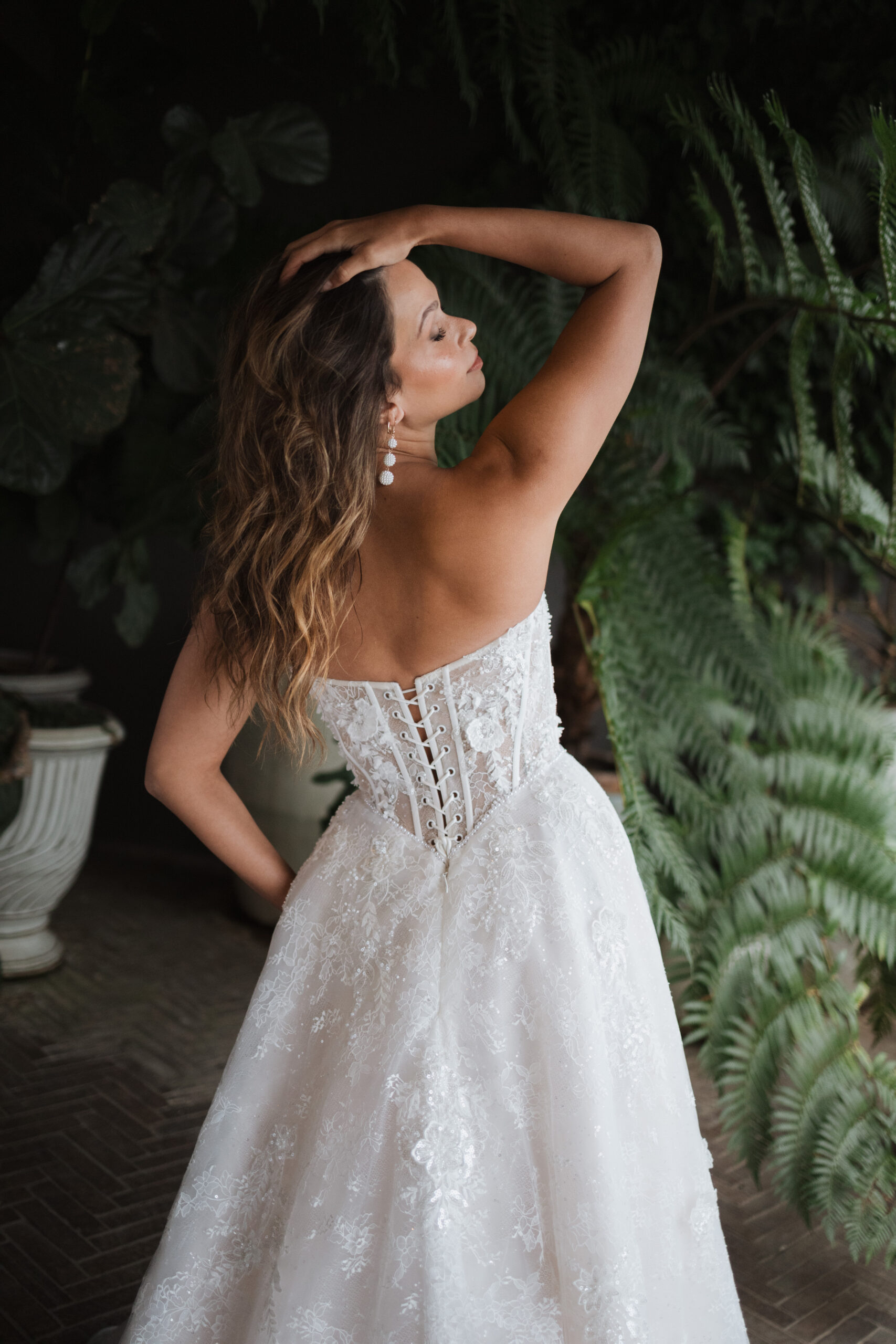 The full ball gown skirt creates dramatic movement and presence, perfect for a grand aisle moment or an unforgettable first dance. With its perfect blend of elegance, structure, and softness, Molly is more than just a gown. It’s a statement of style and romance.